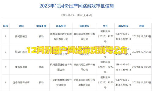 查询结果通常包括游戏名称、游戏类型、版号、批准日期、运营公司等信息。这里,我要重点说说版号。版号由数字和字母组成,比如“新广审[2023]123456号”。其中,“新广审”代表新游戏版号,“[2023]”代表批准年份,“123456”代表顺序号。